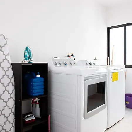 La Amplia Y Familiar Cerca De Fnsm, Isla Sm, Necaxa Y Centro Villa está amueblada con escritorio, así como con TV de pantalla plana con canales vía satélite. Además, para tu comodidad, dispone de secador de pelo.